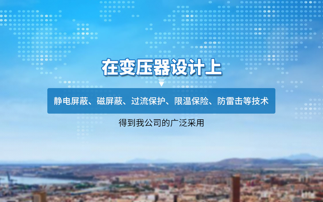 本公司憑借變壓器專業(yè)技術(shù)和設(shè)備優(yōu)勢,致力于研制開發(fā)和生產(chǎn)各類高、新、精變壓器產(chǎn)品,在變壓器設(shè)計上廣泛采用靜電屏蔽、磁屏蔽、過流保護、限溫保險、防雷擊等技術(shù),為我國航天工業(yè)、國防工業(yè)、醫(yī)療科技,設(shè)計生產(chǎn)一系列變壓器新產(chǎn)品。